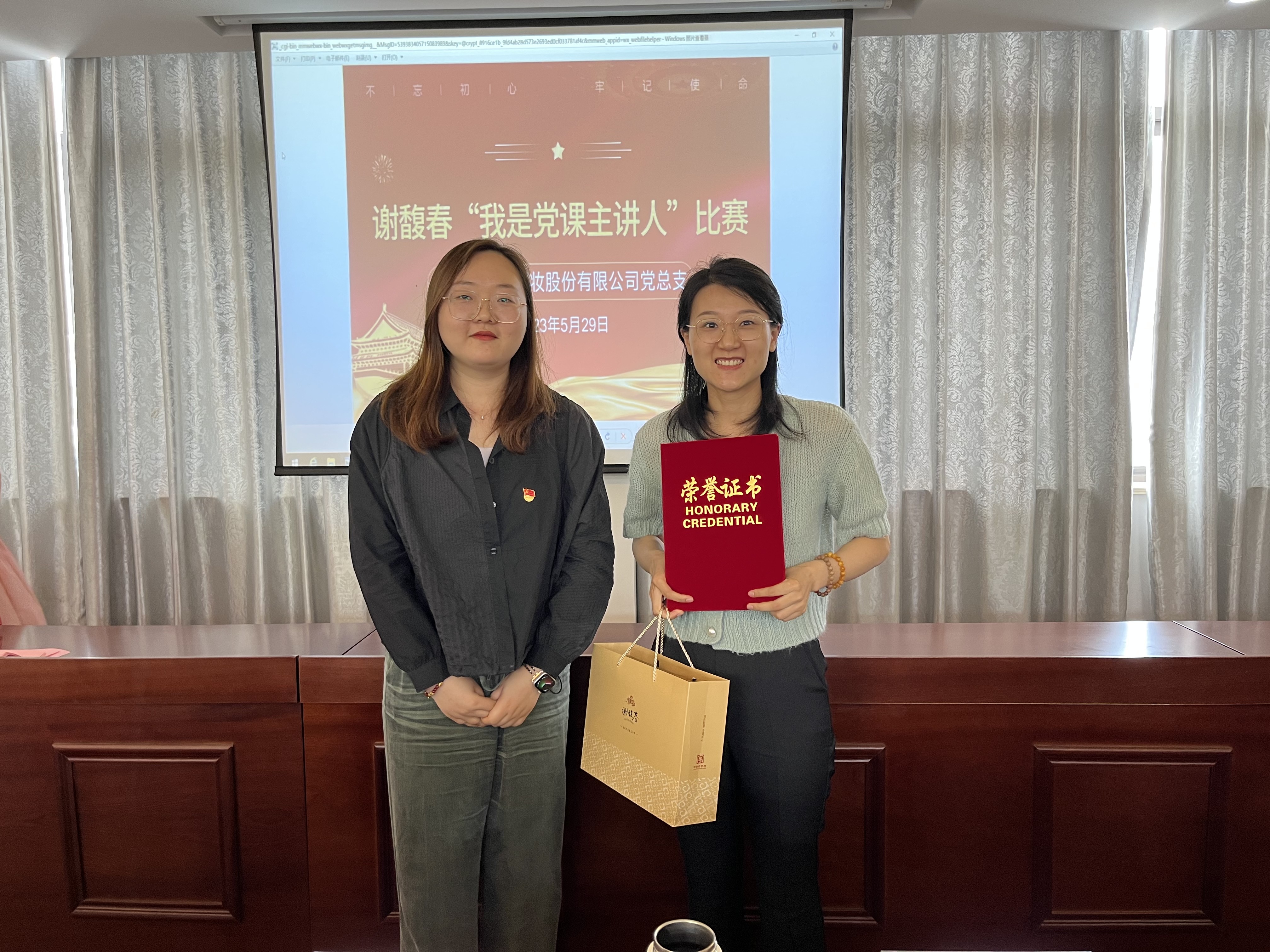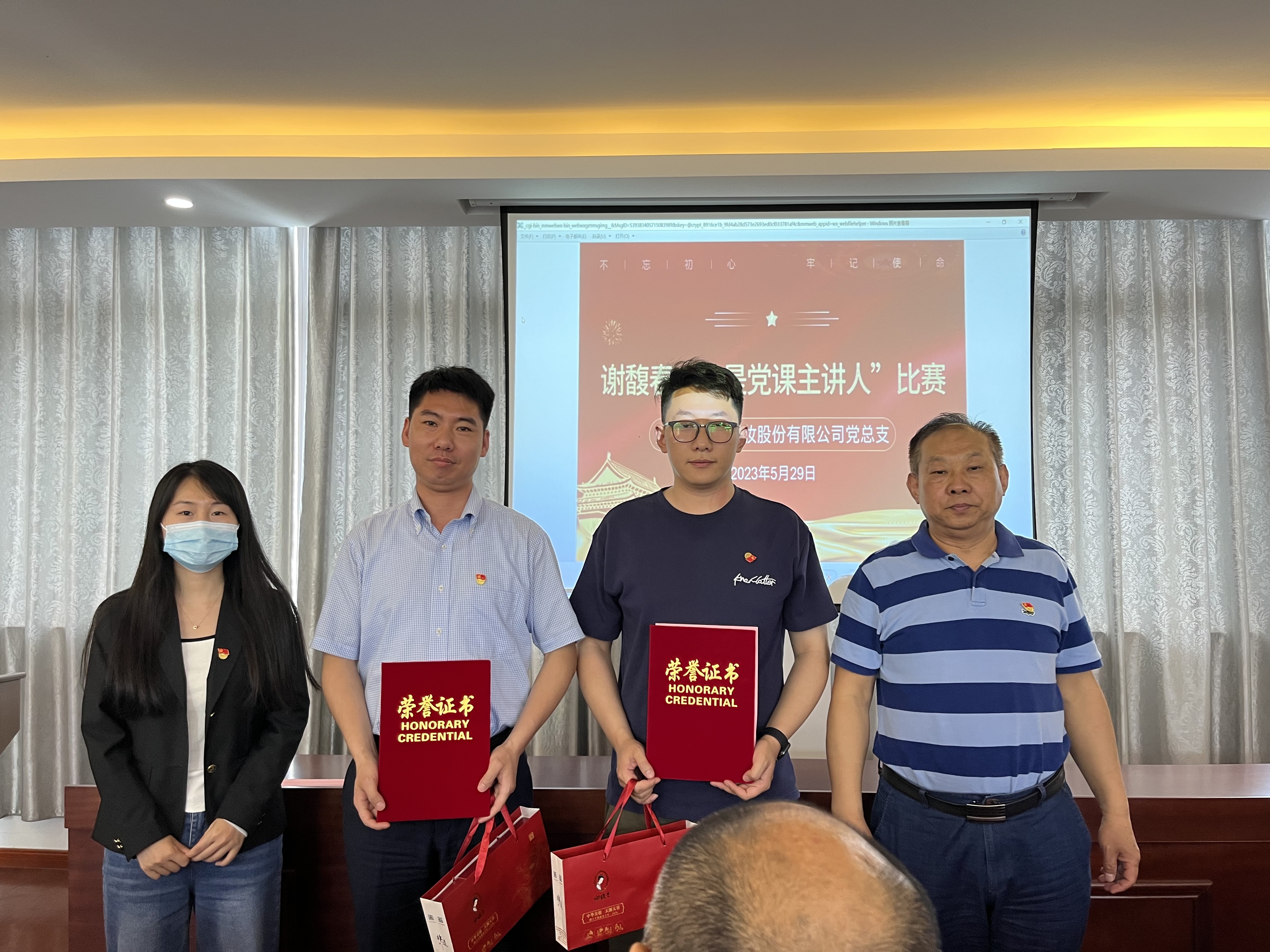 通過評委打分,最終謝馥春黨總支“我是黨課主講人”比賽評選出1名一等獎,2名二等獎以及2名三等獎,謝馥春公司領導班子、黨總支委員們為獲獎者現場頒發了榮譽證書及獎品。
